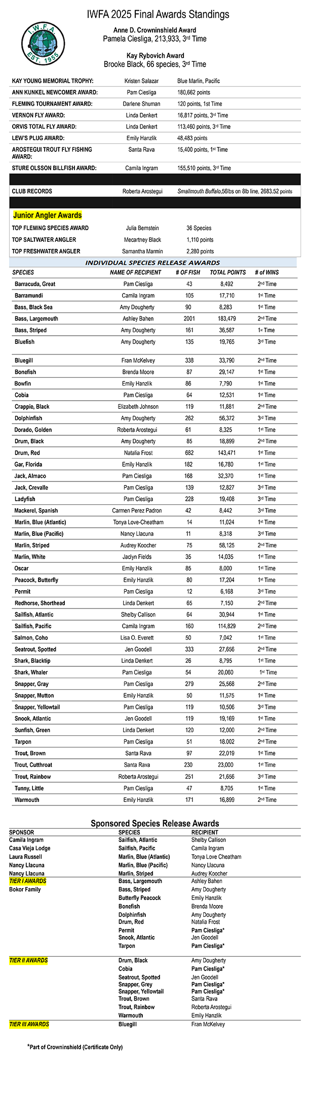 - 2025 Fishing Year Annual Award Winners