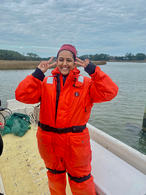 "I am a third year PhD Student at the Virginia Institute of Marine Science (VIMS) combining genetic and morphological tools to study skates! I have the privilege of working in fisheries collections, lab spaces and on commercial sea scallop boats to understand skate taxonomy and apply what I learn for better bycatch identification in the field. Fun fact: my passion for art and science communication has led to many collaborations with high school and college students to combine the two disciplines for outreach education – scientific illustrations, integrating ray movements into a dance, and even lesson plan publications for the broader VA community!"